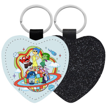 Inside Out, Μπρελόκ PU δερμάτινο glitter καρδιά ΜΑΥΡΟ
