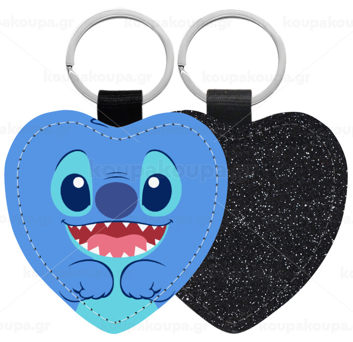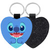 Lilo & Stitch blue, Μπρελόκ PU δερμάτινο glitter καρδιά ΜΑΥΡΟ