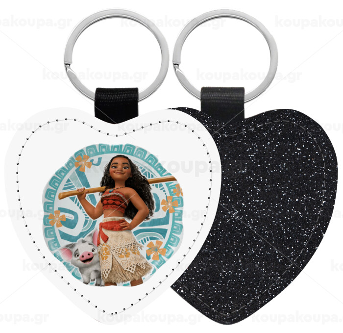 Moana, Μπρελόκ PU δερμάτινο glitter καρδιά ΜΑΥΡΟ