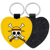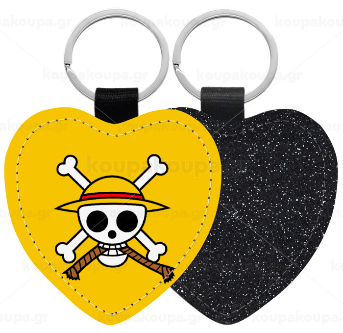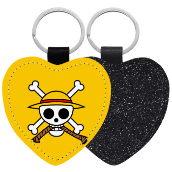 Onepiece skull, Μπρελόκ PU δερμάτινο glitter καρδιά ΜΑΥΡΟ