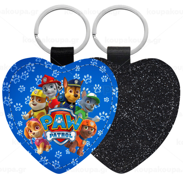PAW patrol, Μπρελόκ PU δερμάτινο glitter καρδιά ΜΑΥΡΟ
