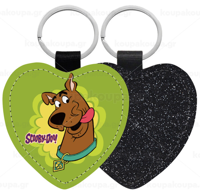 Scooby Doo, Μπρελόκ PU δερμάτινο glitter καρδιά ΜΑΥΡΟ