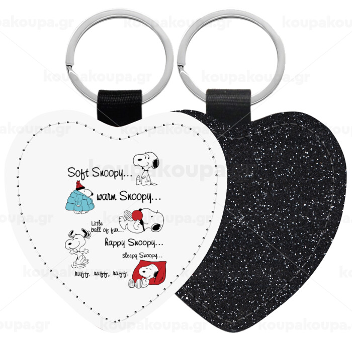 Snoopy manual, Μπρελόκ PU δερμάτινο glitter καρδιά ΜΑΥΡΟ