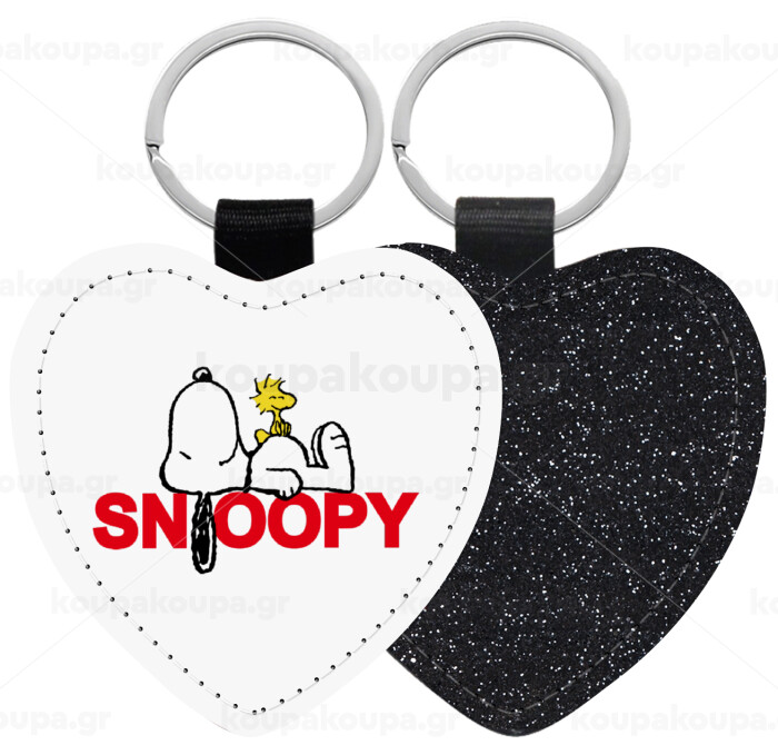 Snoopy sleep, Μπρελόκ PU δερμάτινο glitter καρδιά ΜΑΥΡΟ