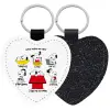 Snoopy what makes my happy, Μπρελόκ PU δερμάτινο glitter καρδιά ΜΑΥΡΟ