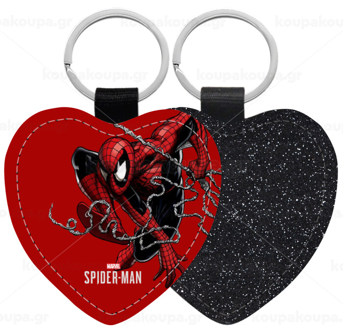 Spider-man, Μπρελόκ PU δερμάτινο glitter καρδιά ΜΑΥΡΟ