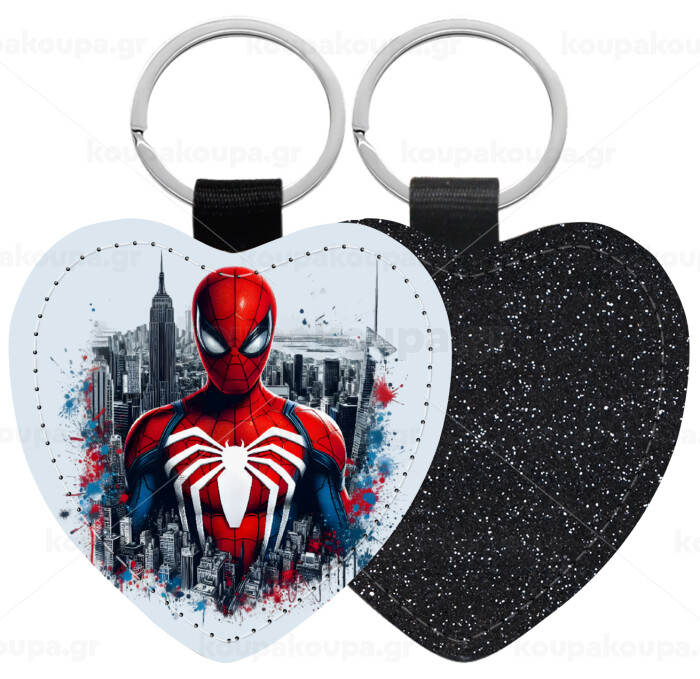 Spiderman City, Μπρελόκ PU δερμάτινο glitter καρδιά ΜΑΥΡΟ