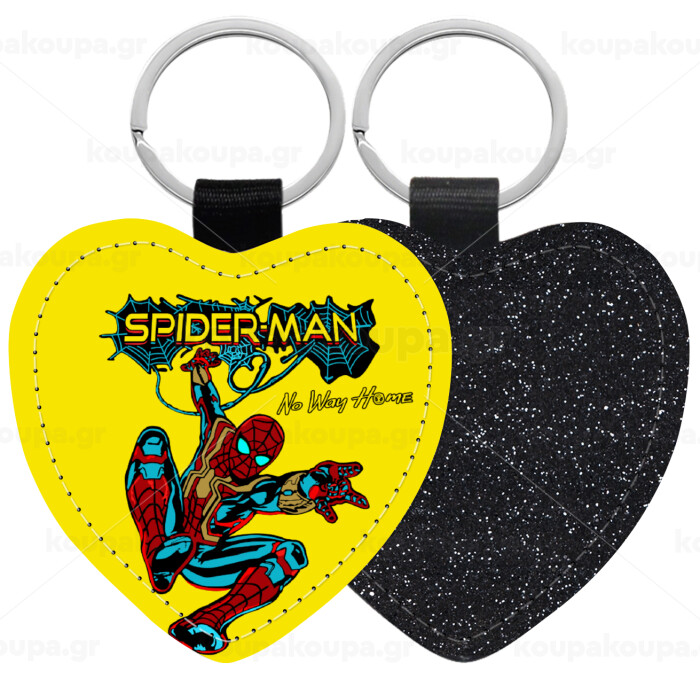 Spiderman no way home, Μπρελόκ PU δερμάτινο glitter καρδιά ΜΑΥΡΟ
