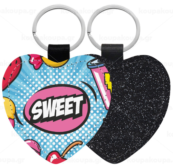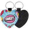 SWEET, Μπρελόκ PU δερμάτινο glitter καρδιά ΜΑΥΡΟ
