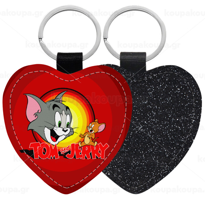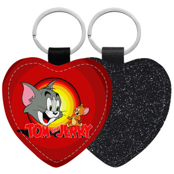 Tom and Jerry, Μπρελόκ PU δερμάτινο glitter καρδιά ΜΑΥΡΟ