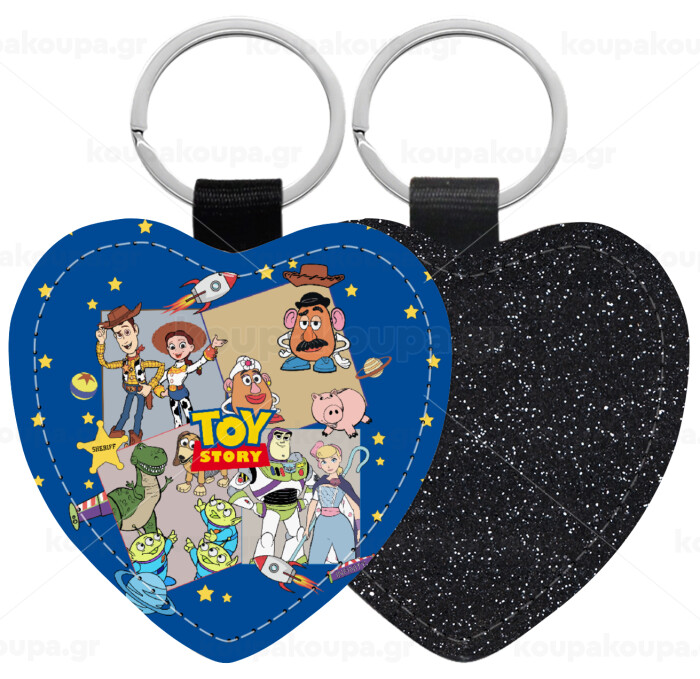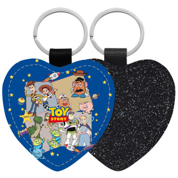 toystory characters, Μπρελόκ PU δερμάτινο glitter καρδιά ΜΑΥΡΟ