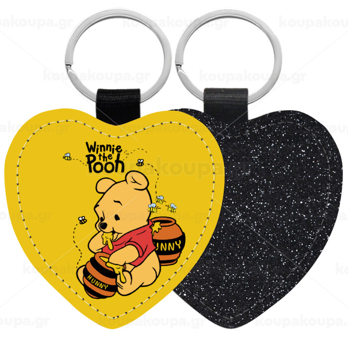Winnie the Pooh, Μπρελόκ PU δερμάτινο glitter καρδιά ΜΑΥΡΟ