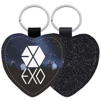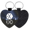 EXO Band korea, Μπρελόκ PU δερμάτινο glitter καρδιά ΜΑΥΡΟ