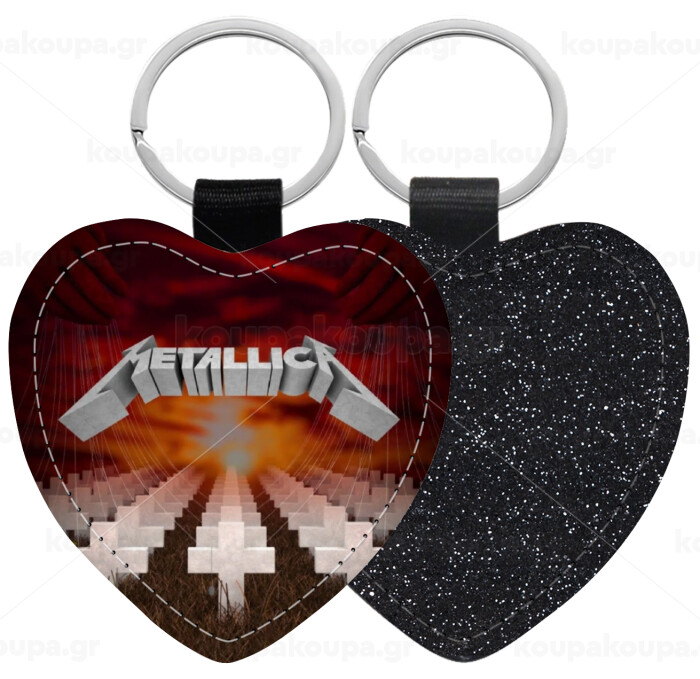 Metallica master of puppets cover, Μπρελόκ PU δερμάτινο glitter καρδιά ΜΑΥΡΟ