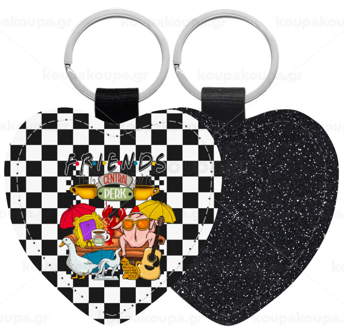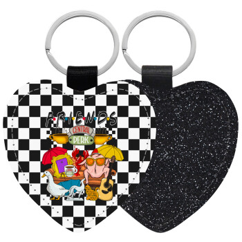 Friends, Μπρελόκ PU δερμάτινο glitter καρδιά ΜΑΥΡΟ