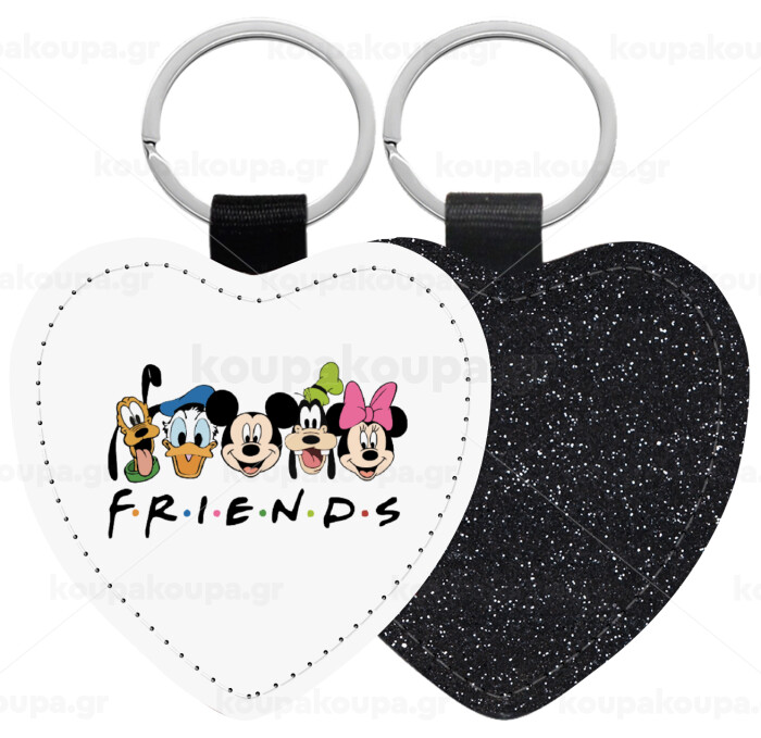 Friends characters, Μπρελόκ PU δερμάτινο glitter καρδιά ΜΑΥΡΟ