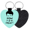 Friends how you doin?, Μπρελόκ PU δερμάτινο glitter καρδιά ΜΑΥΡΟ
