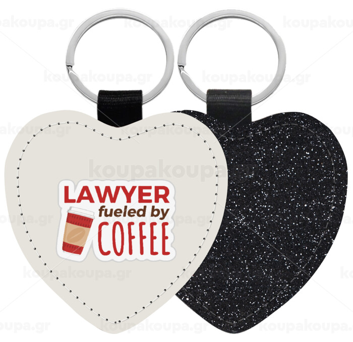 Lawyer fueled by coffee, Μπρελόκ PU δερμάτινο glitter καρδιά ΜΑΥΡΟ