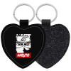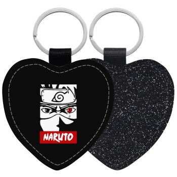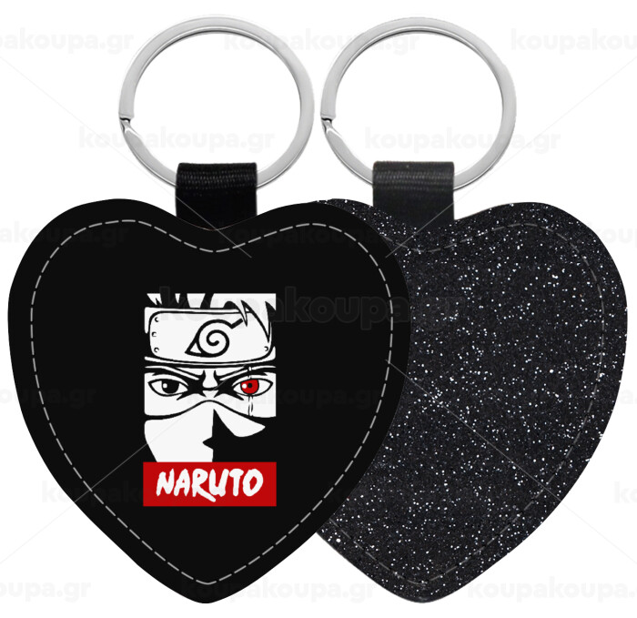 Naruto anime, Μπρελόκ PU δερμάτινο glitter καρδιά ΜΑΥΡΟ