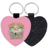 Leatherette keychain with glitter on one side and high resistance leatherette on the other. Safety ring for the keys.
