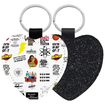 The Big Bang Theory pattern, Μπρελόκ PU δερμάτινο glitter καρδιά ΜΑΥΡΟ