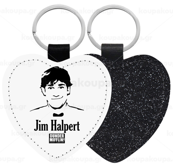 The office Jim Halpert, Μπρελόκ PU δερμάτινο glitter καρδιά ΜΑΥΡΟ