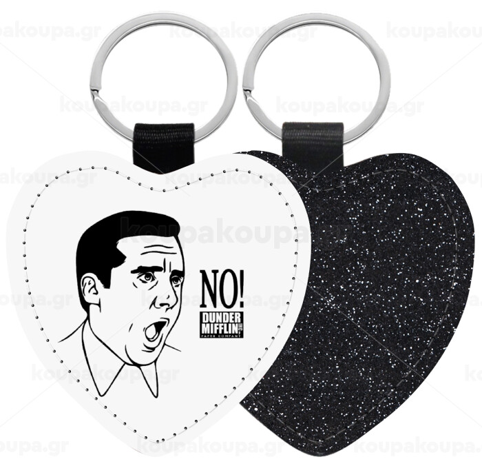 The office Michael NO!!!, Μπρελόκ PU δερμάτινο glitter καρδιά ΜΑΥΡΟ