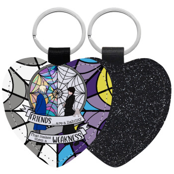 Wednesday window, Μπρελόκ PU δερμάτινο glitter καρδιά ΜΑΥΡΟ