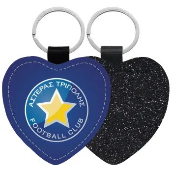 Asteras Tripolis, Μπρελόκ PU δερμάτινο glitter καρδιά ΜΑΥΡΟ