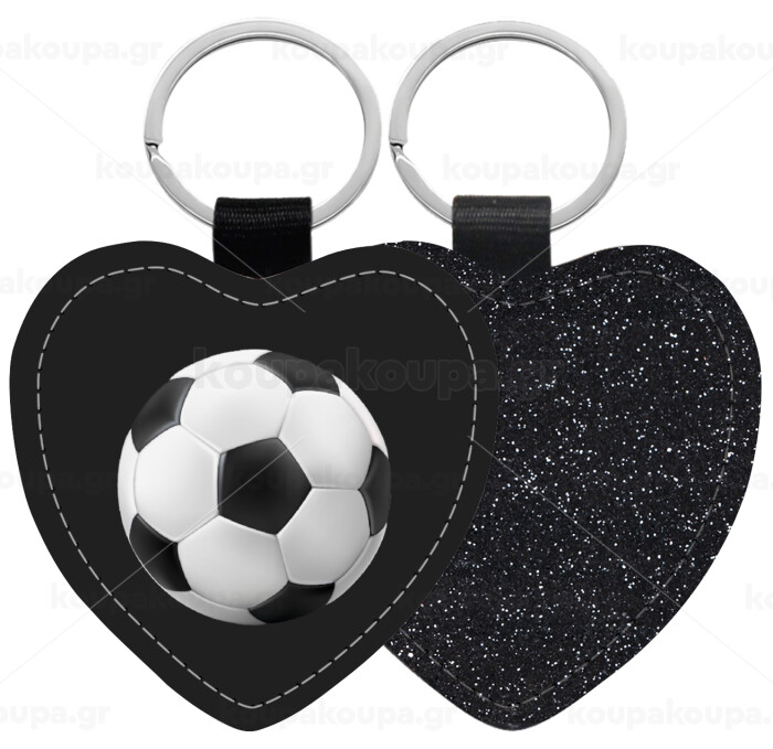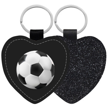 Soccer ball, Μπρελόκ PU δερμάτινο glitter καρδιά ΜΑΥΡΟ