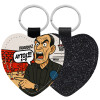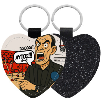 Μπαρτζό, Ποιος? Αυτός!!! 1-0, Μπρελόκ PU δερμάτινο glitter καρδιά ΜΑΥΡΟ