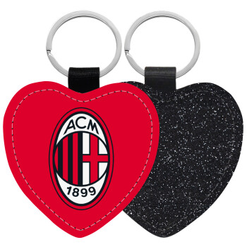 ACM, Μπρελόκ PU δερμάτινο glitter καρδιά ΜΑΥΡΟ