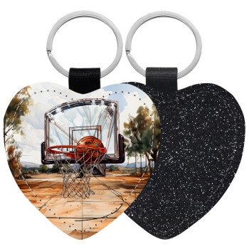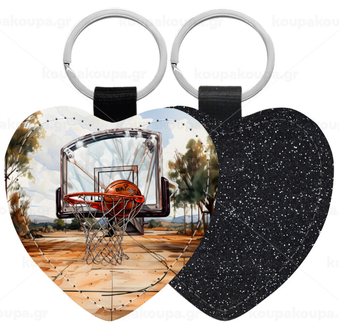 Basketball, Μπρελόκ PU δερμάτινο glitter καρδιά ΜΑΥΡΟ