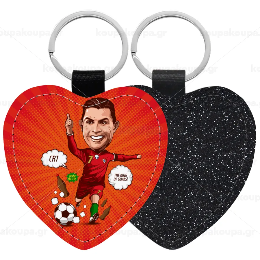 Cristiano Ronaldo, Μπρελόκ PU δερμάτινο glitter καρδιά ΜΑΥΡΟ