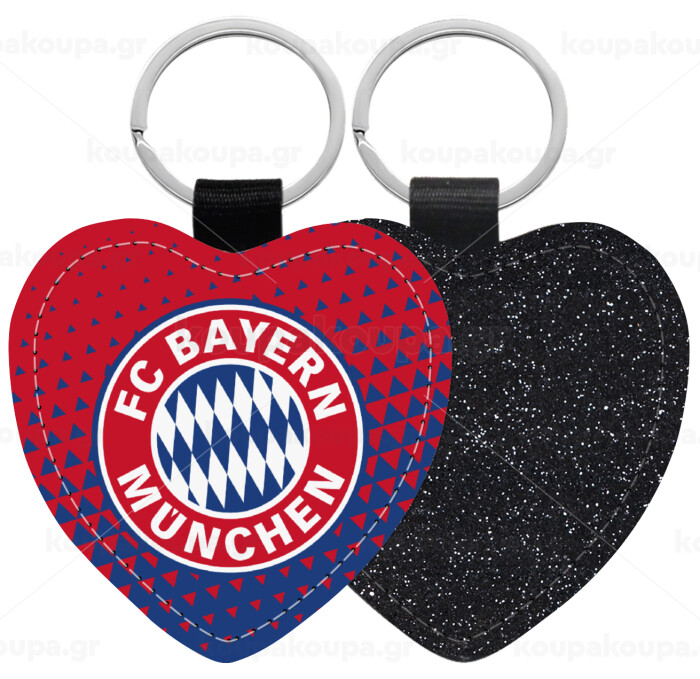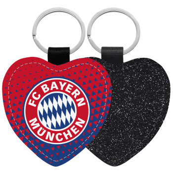 FC Bayern Munich, Μπρελόκ PU δερμάτινο glitter καρδιά ΜΑΥΡΟ