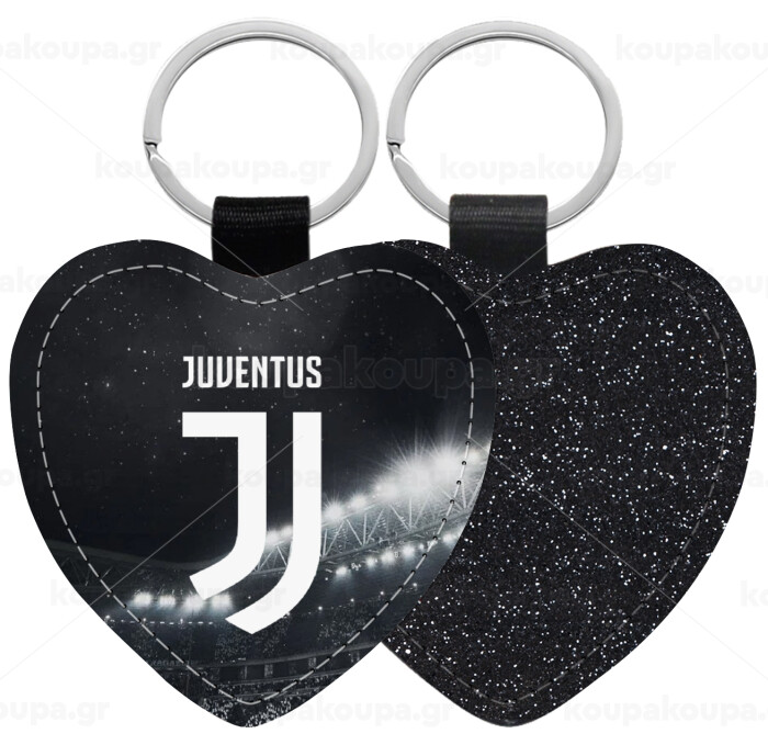 FC Juventus, Μπρελόκ PU δερμάτινο glitter καρδιά ΜΑΥΡΟ