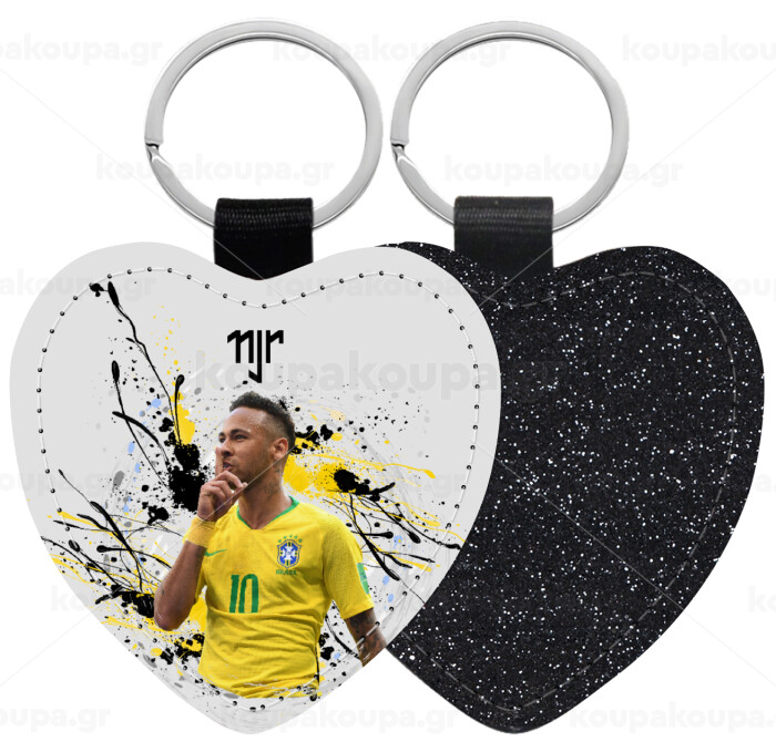 Neymar JR, Μπρελόκ PU δερμάτινο glitter καρδιά ΜΑΥΡΟ