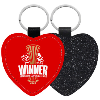 Europa Conference League WINNER, Μπρελόκ PU δερμάτινο glitter καρδιά ΜΑΥΡΟ