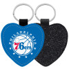 Philadelphia 76ers, Μπρελόκ PU δερμάτινο glitter καρδιά ΜΑΥΡΟ