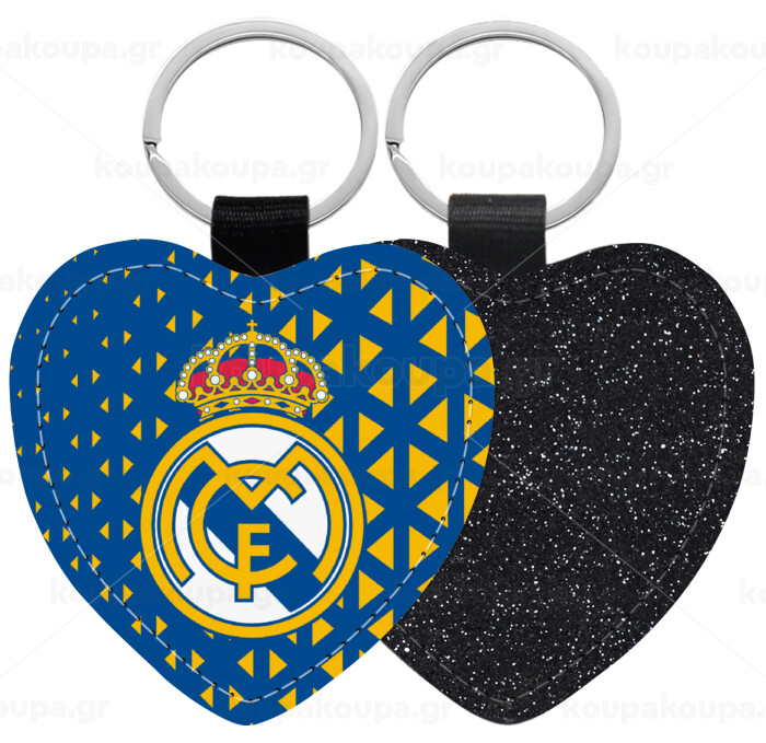Real Madrid CF, Μπρελόκ PU δερμάτινο glitter καρδιά ΜΑΥΡΟ
