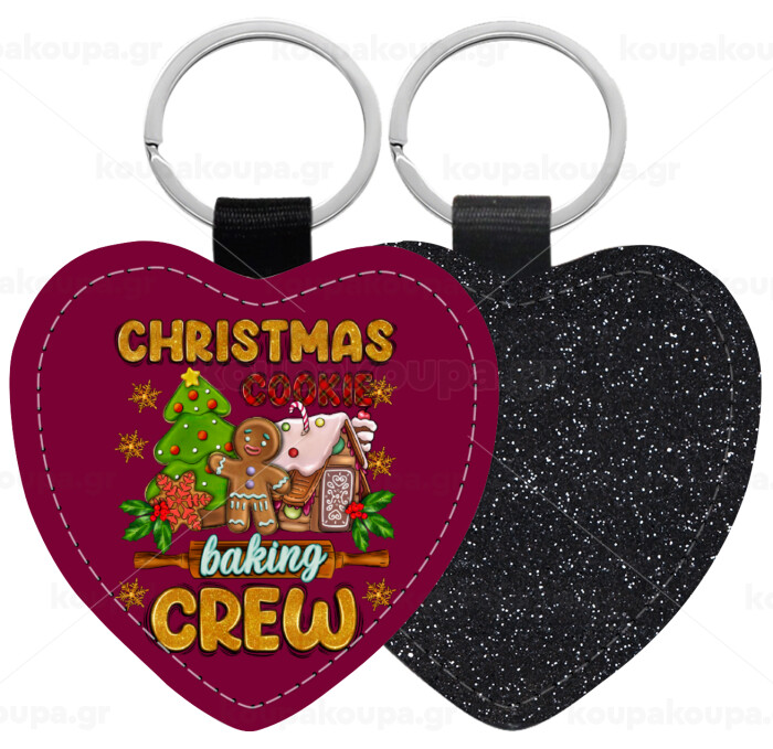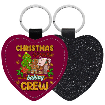Christmas Cookie Baking Crew, Μπρελόκ PU δερμάτινο glitter καρδιά ΜΑΥΡΟ