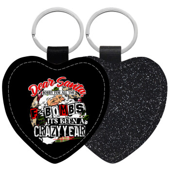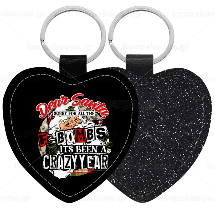 Dear Santa, sorry for all the F-bombs, Μπρελόκ PU δερμάτινο glitter καρδιά ΜΑΥΡΟ