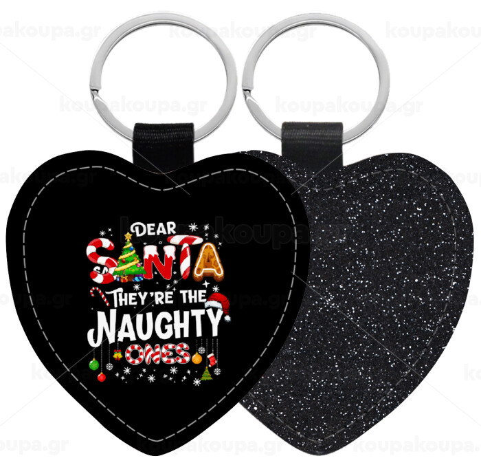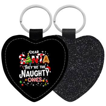 Dear santa they're the naughty , Μπρελόκ PU δερμάτινο glitter καρδιά ΜΑΥΡΟ