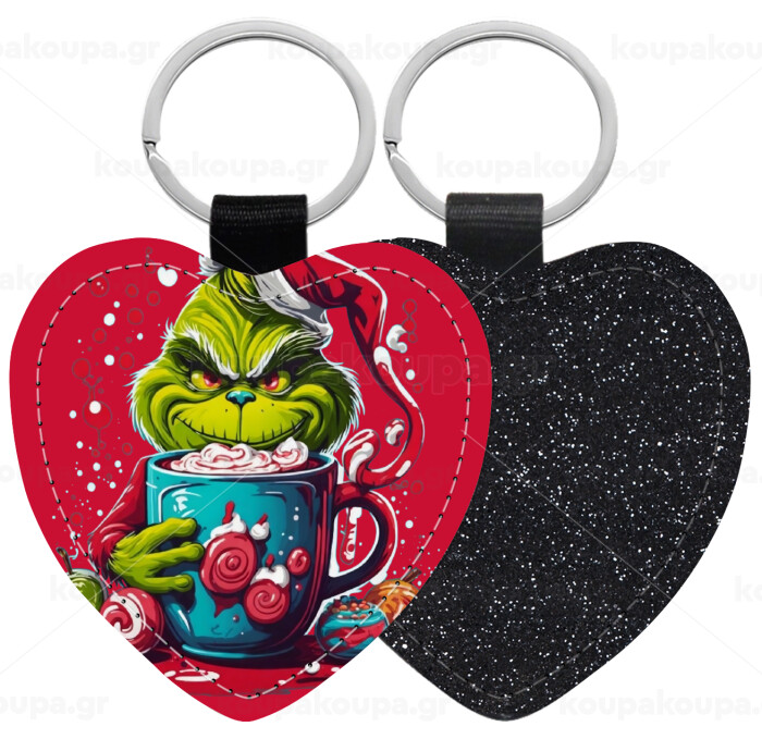 Giggling Grinchy Galore, Μπρελόκ PU δερμάτινο glitter καρδιά ΜΑΥΡΟ