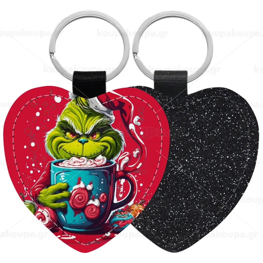 Giggling Grinchy Galore, Μπρελόκ PU δερμάτινο glitter καρδιά ΜΑΥΡΟ