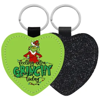 Grinch Feeling Extra Grinchy Today, Μπρελόκ PU δερμάτινο glitter καρδιά ΜΑΥΡΟ