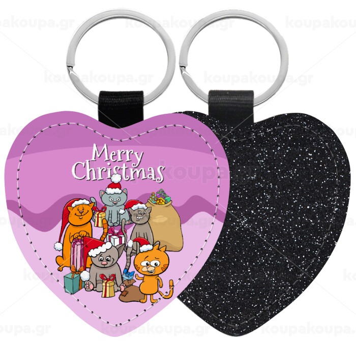 Merry Christmas Cats, Μπρελόκ PU δερμάτινο glitter καρδιά ΜΑΥΡΟ