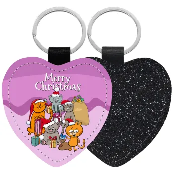 Merry Christmas Cats, Μπρελόκ PU δερμάτινο glitter καρδιά ΜΑΥΡΟ
