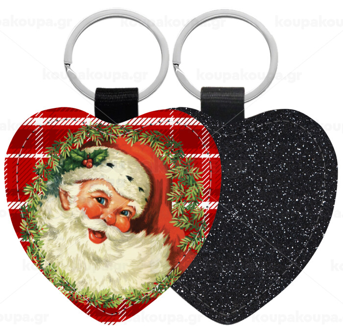 Santa Claus, Μπρελόκ PU δερμάτινο glitter καρδιά ΜΑΥΡΟ