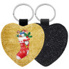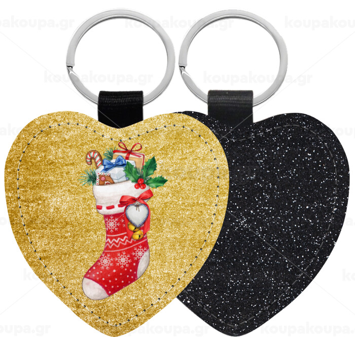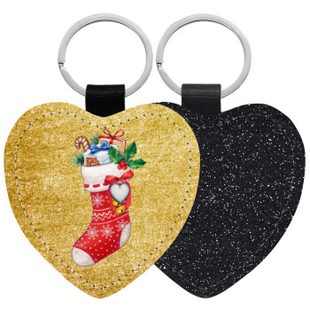 Xmas boot, Μπρελόκ PU δερμάτινο glitter καρδιά ΜΑΥΡΟ